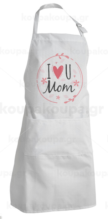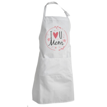 I Love you Mom pink, Adult Chef Apron (with sliders and 2 pockets)