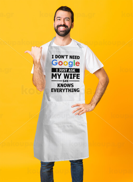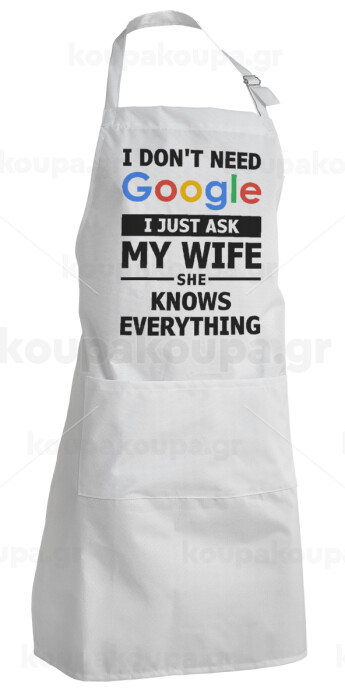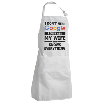 I don't need Google, just ask my WIFE, Adult Chef Apron (with sliders and 2 pockets)