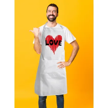 I Love You red heart, Adult Chef Apron (with sliders and 2 pockets)
