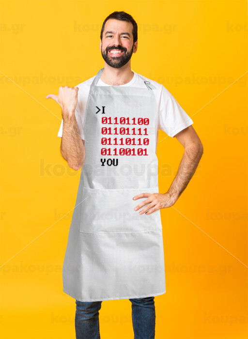 I .... YOU, binary secret MSG, Adult Chef Apron (with sliders and 2 pockets)