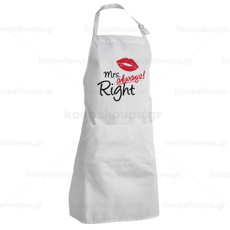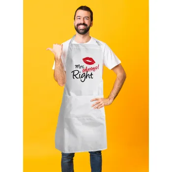 Mrs always right kiss, Adult Chef Apron (with sliders and 2 pockets)