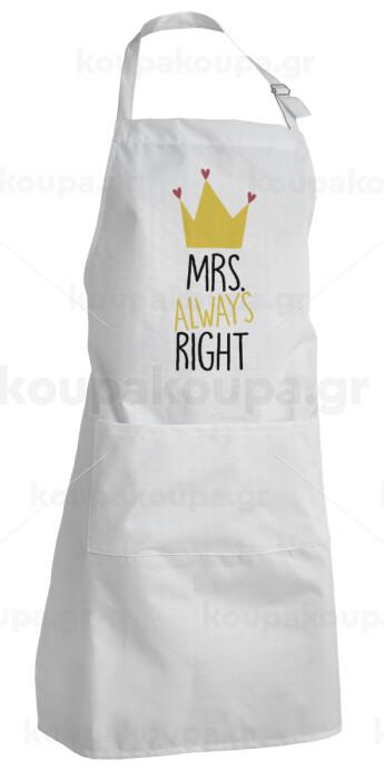 Mrs "Always" right, Adult Chef Apron (with sliders and 2 pockets)