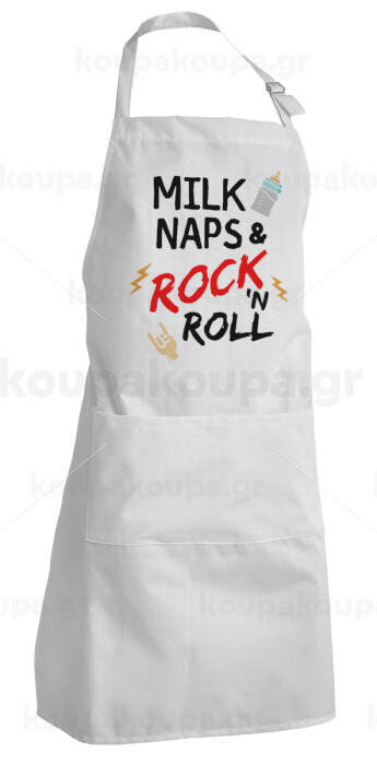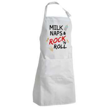 milk naps and Rock n' Roll, Adult Chef Apron (with sliders and 2 pockets)