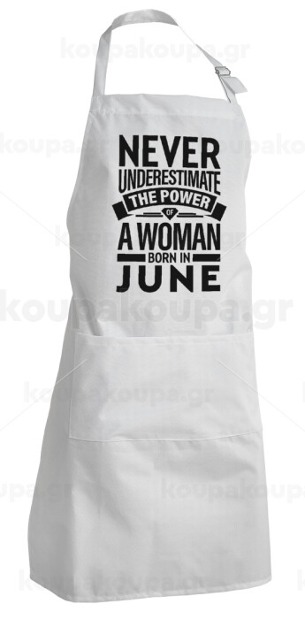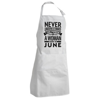 Never Underestimate the poer of a Woman born in..., Adult Chef Apron (with sliders and 2 pockets)