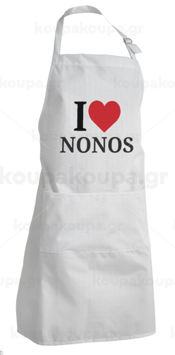 I Love ΝΟΝΟΣ, Adult Chef Apron (with sliders and 2 pockets)