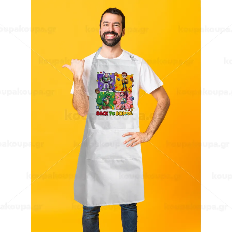 Back to the School Buzz & Friends, Adult Chef Apron (with sliders and 2 pockets)
