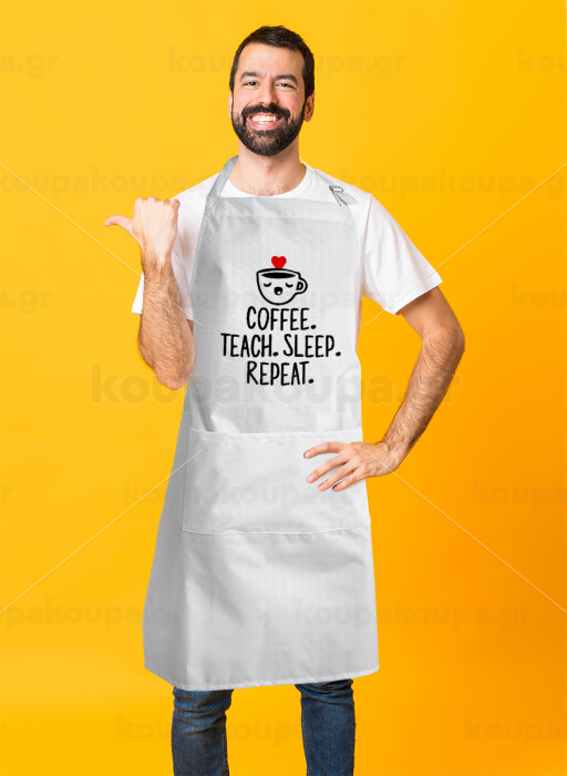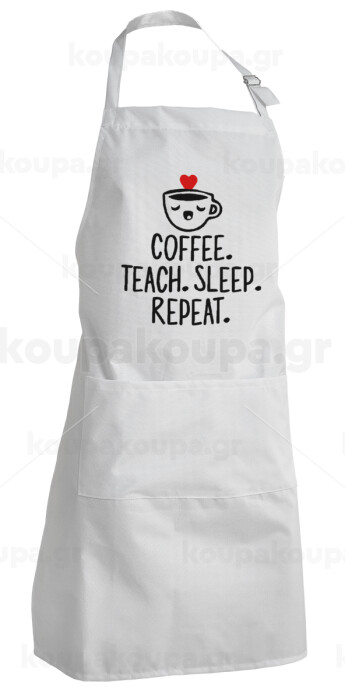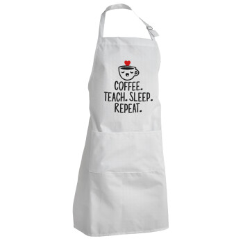 Coffee Teach Sleep Repeat, Adult Chef Apron (with sliders and 2 pockets)