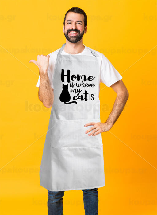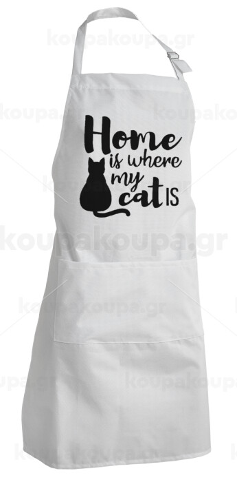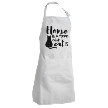 Home is where my cat is!, Adult Chef Apron (with sliders and 2 pockets)