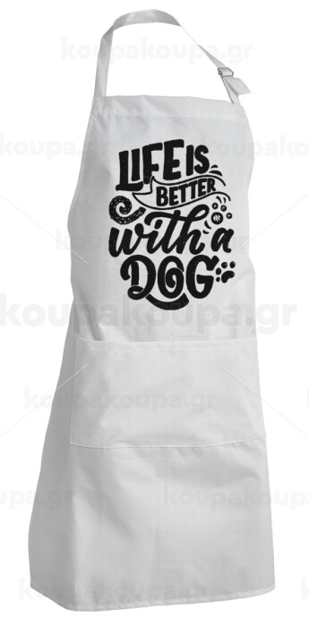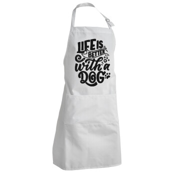 Life is better with a DOG, Adult Chef Apron (with sliders and 2 pockets)