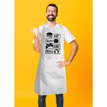 Eat Sleep Game Repeat, Adult Chef Apron (with sliders and 2 pockets)