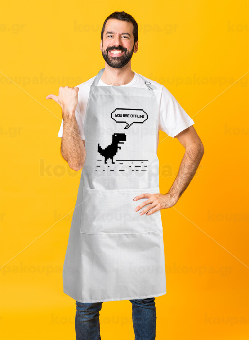 You are offline dinosaur, Adult Chef Apron (with sliders and 2 pockets)