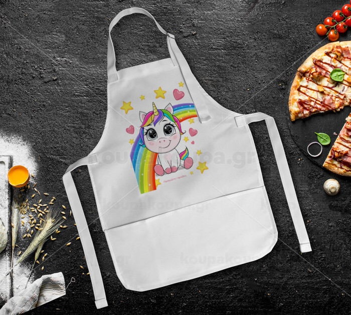 Unicorn baby με όνομα, Ποδιά Σεφ Ολόσωμη Παιδική (με ρυθμιστικά και 2 τσέπες)