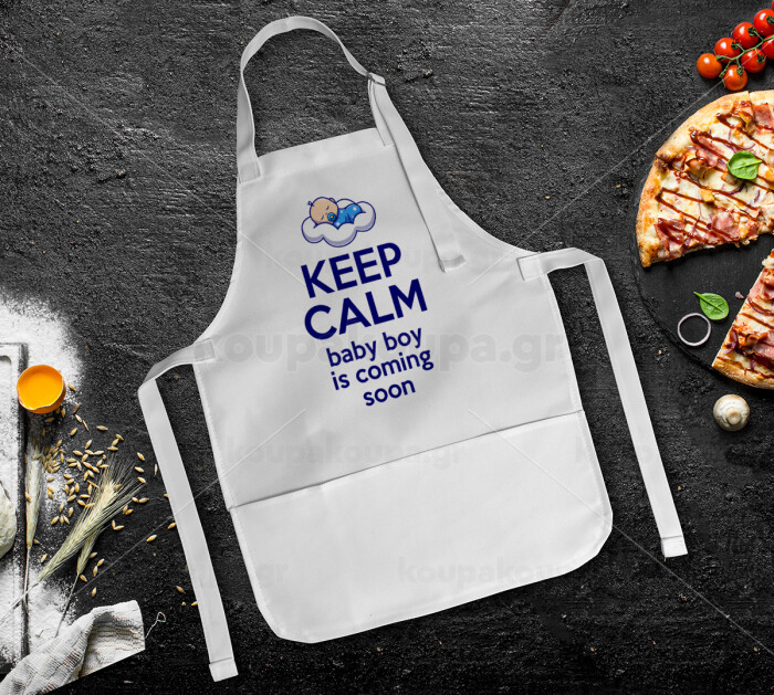 KEEP CALM baby boy is coming soon!!!, Ποδιά Σεφ Ολόσωμη Παιδική (με ρυθμιστικά και 2 τσέπες)