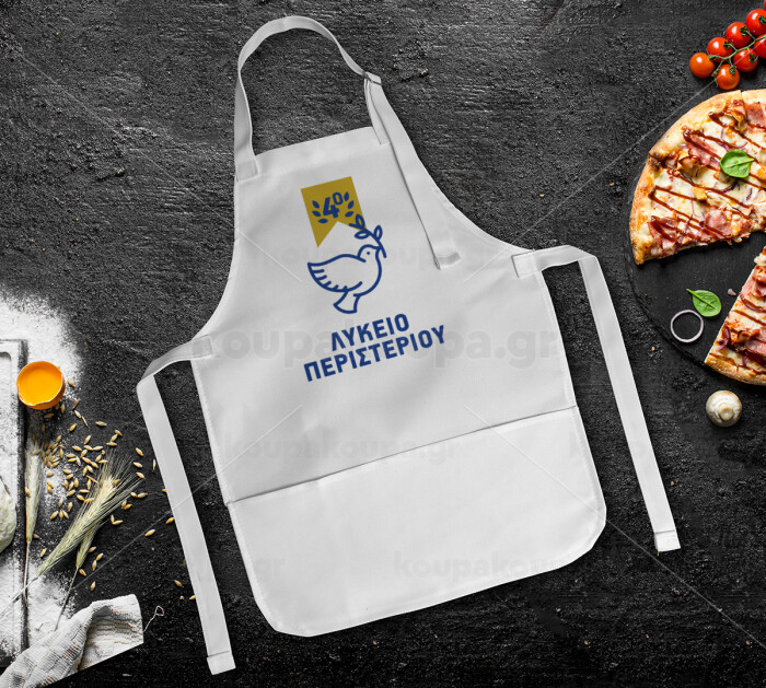 Έμβλημα Σχολικό μπλε/χρυσό περιστέρι, Ποδιά Σεφ Ολόσωμη Παιδική (με ρυθμιστικά και 2 τσέπες)