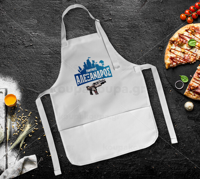 Fortnite with gun με το όνομα σου, Ποδιά Σεφ Ολόσωμη Παιδική (με ρυθμιστικά και 2 τσέπες)