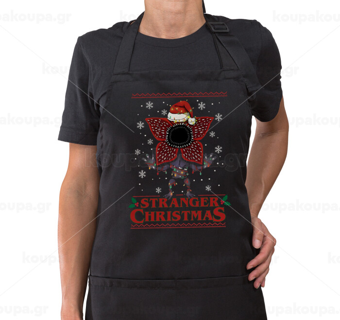 Stranger Things Christmas, Ποδιά μακριά Σεφ ολόσωμη με τσέπες Μαύρη (ΕΝΗΛΙΚΩΝ)