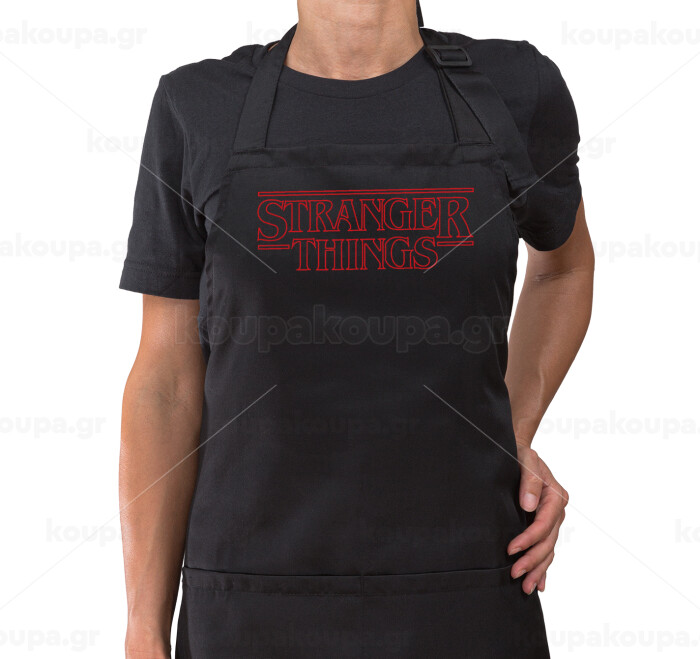 Stranger Things Logo, Ποδιά μακριά Σεφ ολόσωμη με τσέπες Μαύρη (ΕΝΗΛΙΚΩΝ)