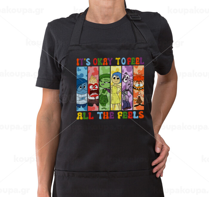 Inside Out It's Okay To Feel All The Feels , Ποδιά μακριά Σεφ ολόσωμη με τσέπες Μαύρη (ΕΝΗΛΙΚΩΝ)