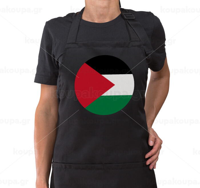 Palestine Flag, Ποδιά μακριά Σεφ ολόσωμη με τσέπες Μαύρη (ΕΝΗΛΙΚΩΝ)