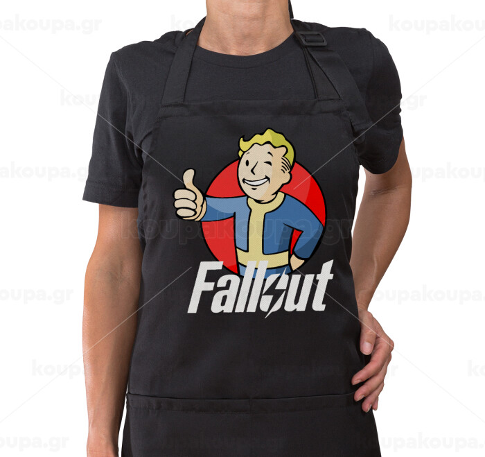 Fallout Vault Boy, Ποδιά μακριά Σεφ ολόσωμη με τσέπες Μαύρη (ΕΝΗΛΙΚΩΝ)