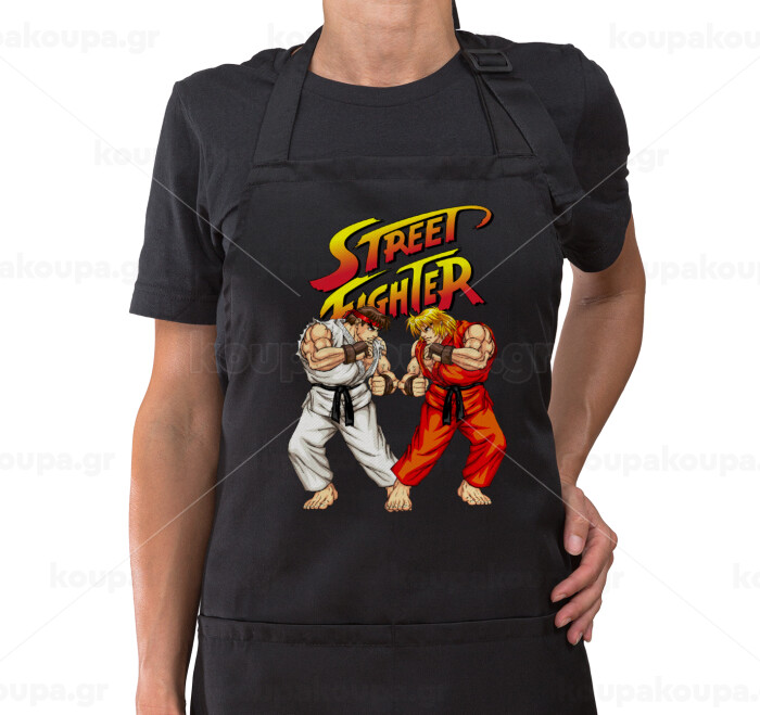 Street fighter, Ποδιά μακριά Σεφ ολόσωμη με τσέπες Μαύρη (ΕΝΗΛΙΚΩΝ)