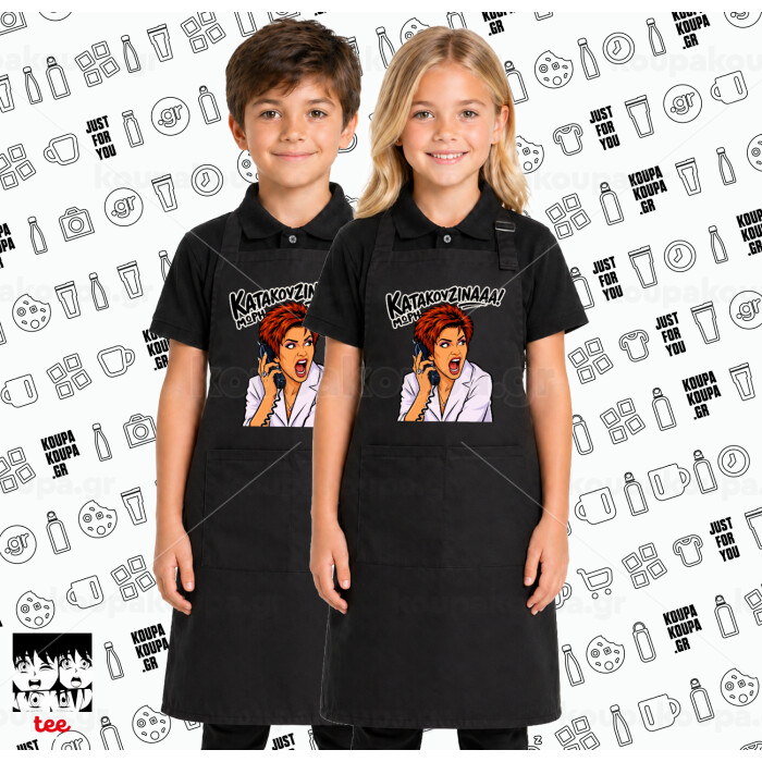 Μωρή Κατακουζίνα, Μαύρη ΠΑΙΔΙΚΗ Ποδιά μακριά Σεφ ολόσωμη με τσέπες