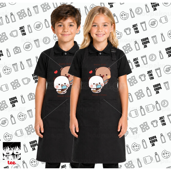 Every Dudu needs a bubu, Μαύρη ΠΑΙΔΙΚΗ Ποδιά μακριά Σεφ ολόσωμη με τσέπες