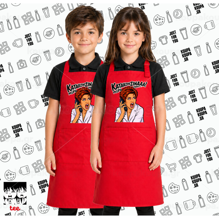 Κούλα μ΄ακούς;, Κόκκινη ΠΑΙΔΙΚΗ Ποδιά μακριά Σεφ ολόσωμη με τσέπες