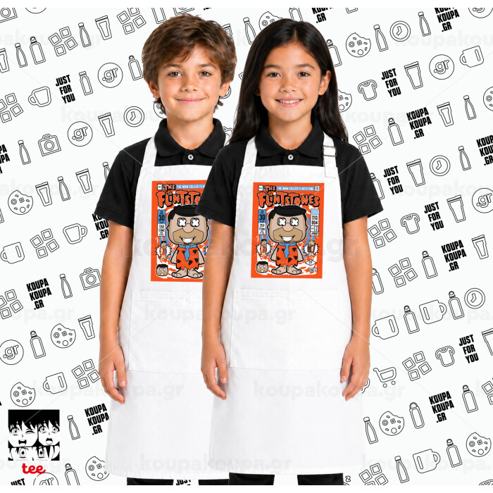 The flintstones, Λευκή ΠΑΙΔΙΚΗ Ποδιά μακριά Σεφ ολόσωμη με τσέπες