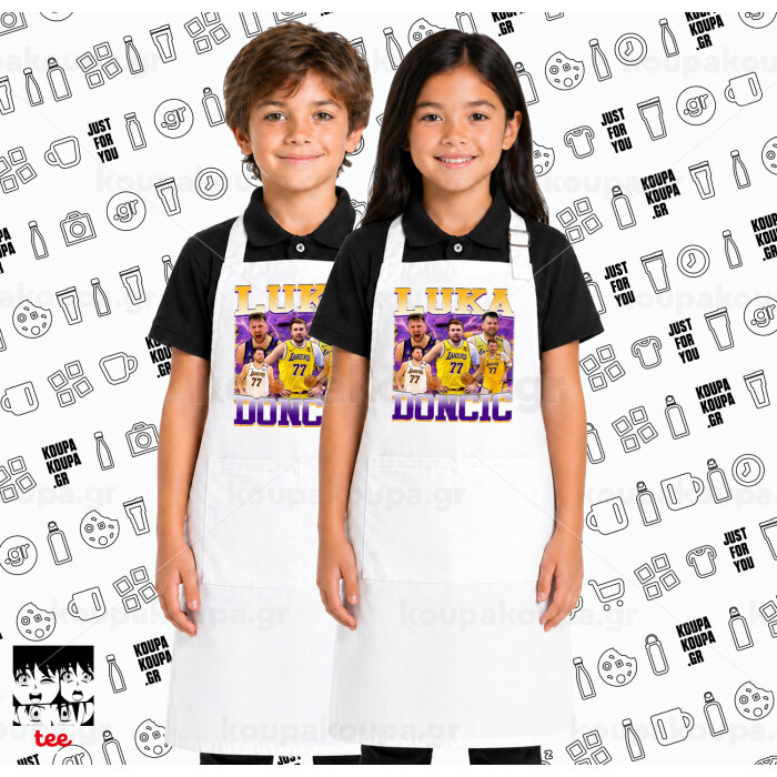 Luka Doncic Basketball , Λευκή ΠΑΙΔΙΚΗ Ποδιά μακριά Σεφ ολόσωμη με τσέπες