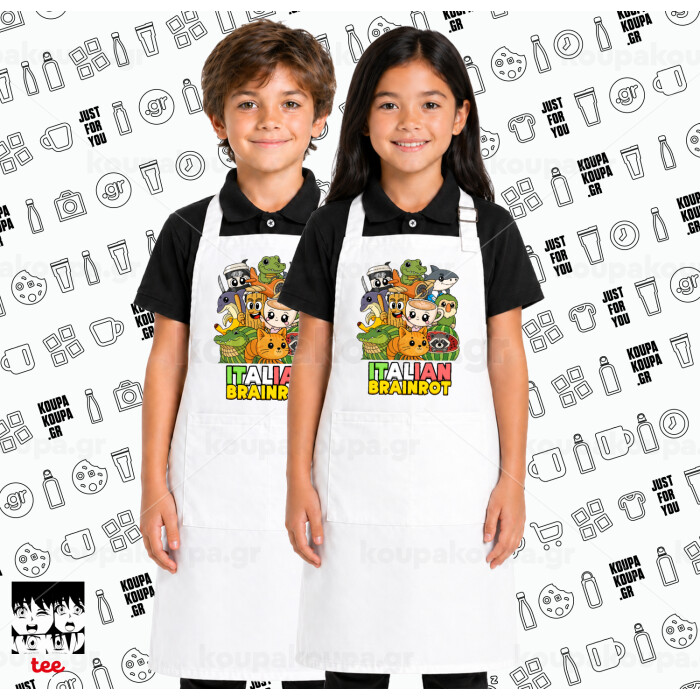 Italian Brainrot friends, Λευκή ΠΑΙΔΙΚΗ Ποδιά μακριά Σεφ ολόσωμη με τσέπες