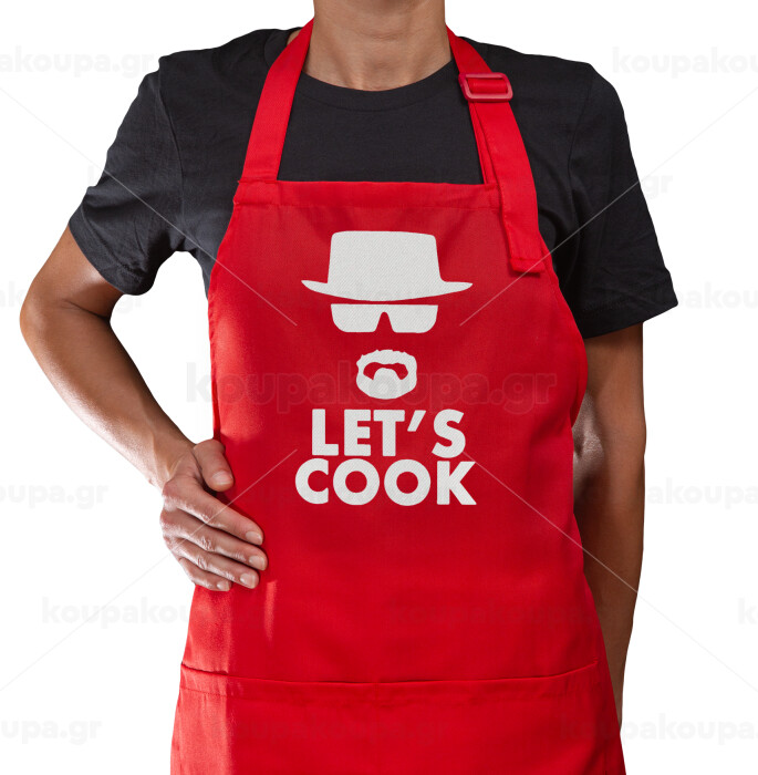 Let's cook, Ποδιά Μακριά Σεφ ολόσωμη με τσέπες Κόκκινη (ΕΝΗΛΙΚΩΝ)