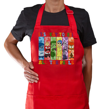Inside Out It's Okay To Feel All The Feels , Ποδιά Μακριά Σεφ ολόσωμη με τσέπες Κόκκινη (ΕΝΗΛΙΚΩΝ)