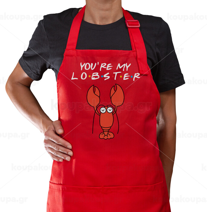 Friends you're my lobster, Ποδιά Μακριά Σεφ ολόσωμη με τσέπες Κόκκινη (ΕΝΗΛΙΚΩΝ)