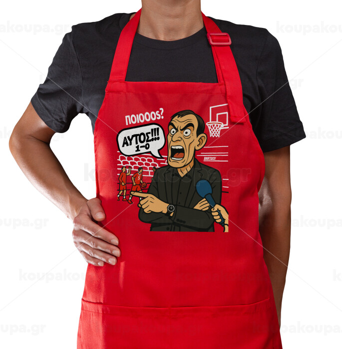 Μπαρτζό, Ποιος? Αυτός!!! 1-0, Ποδιά Μακριά Σεφ ολόσωμη με τσέπες Κόκκινη (ΕΝΗΛΙΚΩΝ)