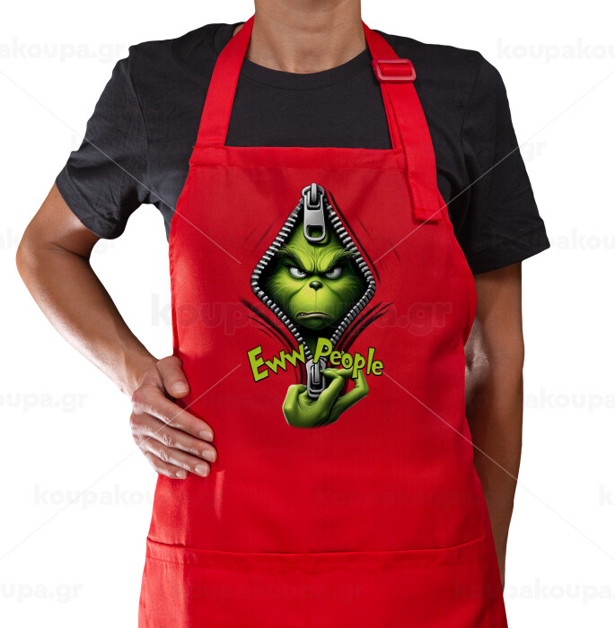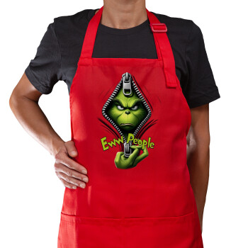 Grinch, eww people, Ποδιά Μακριά Σεφ ολόσωμη με τσέπες Κόκκινη (ΕΝΗΛΙΚΩΝ)