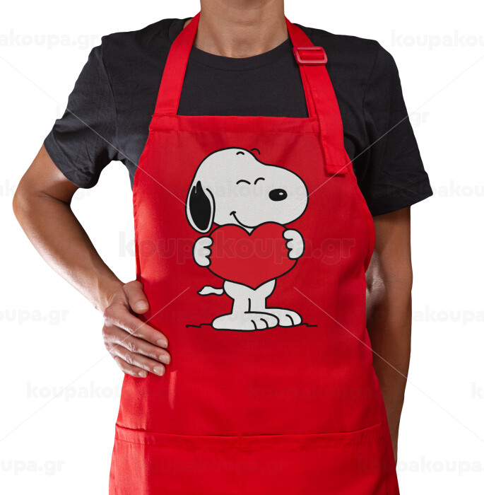 Snoopy takemy heart, Ποδιά Μακριά Σεφ ολόσωμη με τσέπες Κόκκινη (ΕΝΗΛΙΚΩΝ)