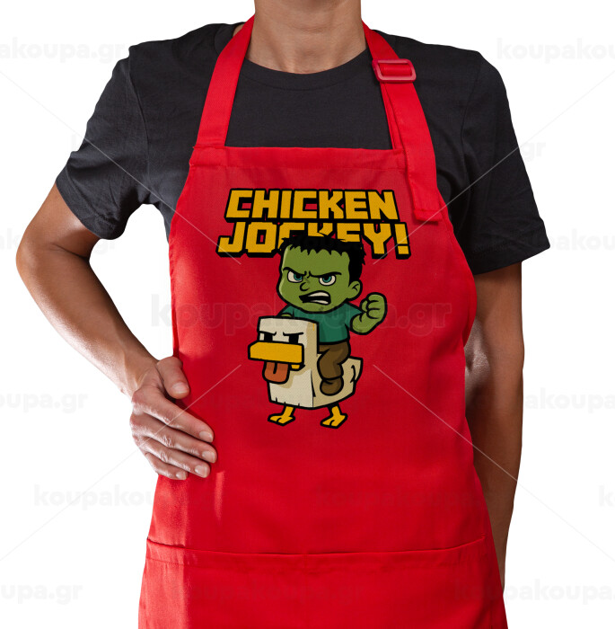 Chicken Jockey, Ποδιά Μακριά Σεφ ολόσωμη με τσέπες Κόκκινη (ΕΝΗΛΙΚΩΝ)