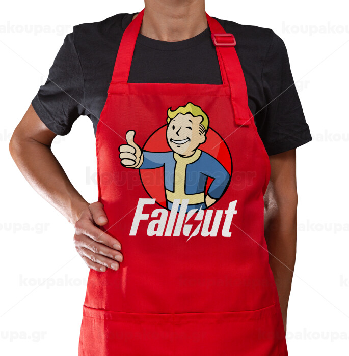 Fallout Vault Boy, Ποδιά Μακριά Σεφ ολόσωμη με τσέπες Κόκκινη (ΕΝΗΛΙΚΩΝ)