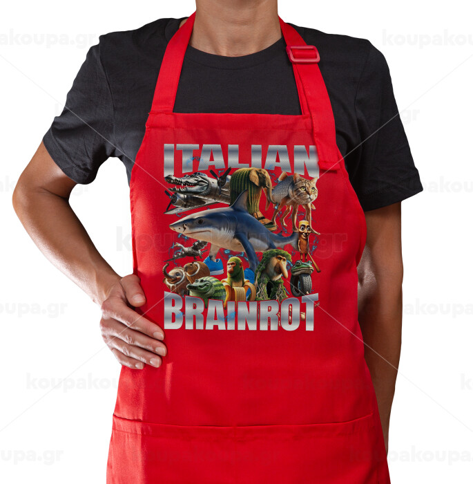 Italian Brainrot, Ποδιά Μακριά Σεφ ολόσωμη με τσέπες Κόκκινη (ΕΝΗΛΙΚΩΝ)