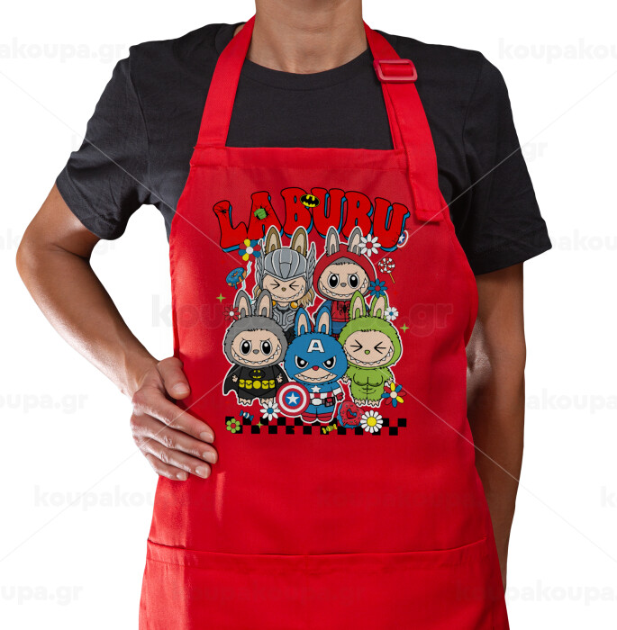 Labubu superheroes, Ποδιά Μακριά Σεφ ολόσωμη με τσέπες Κόκκινη (ΕΝΗΛΙΚΩΝ)