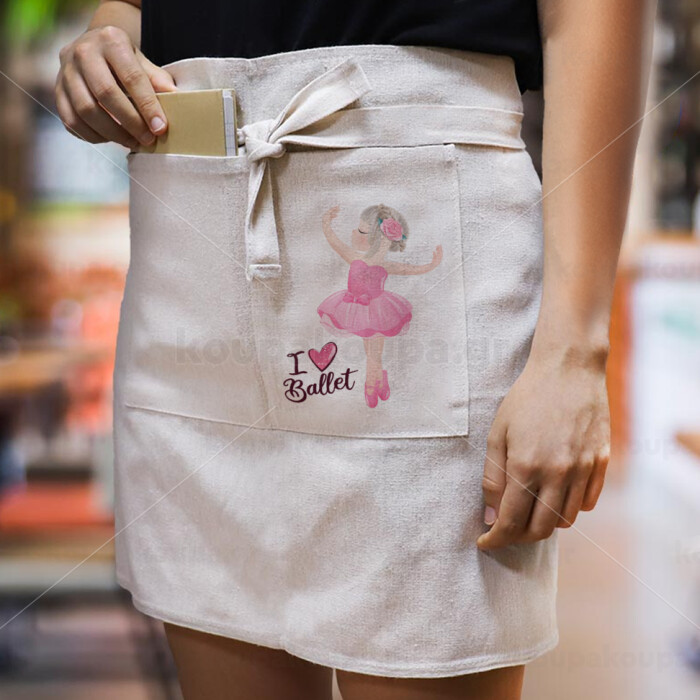 I Love Ballet, Ποδιά Μέσης με διπλή τσέπη Barista/Bartender, Beige