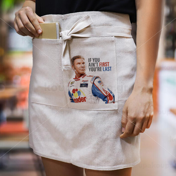 If You Ain't First You're Last Ricky Bobby, Talladega Nights, Ποδιά Μέσης με διπλή τσέπη Barista/Bartender, Beige