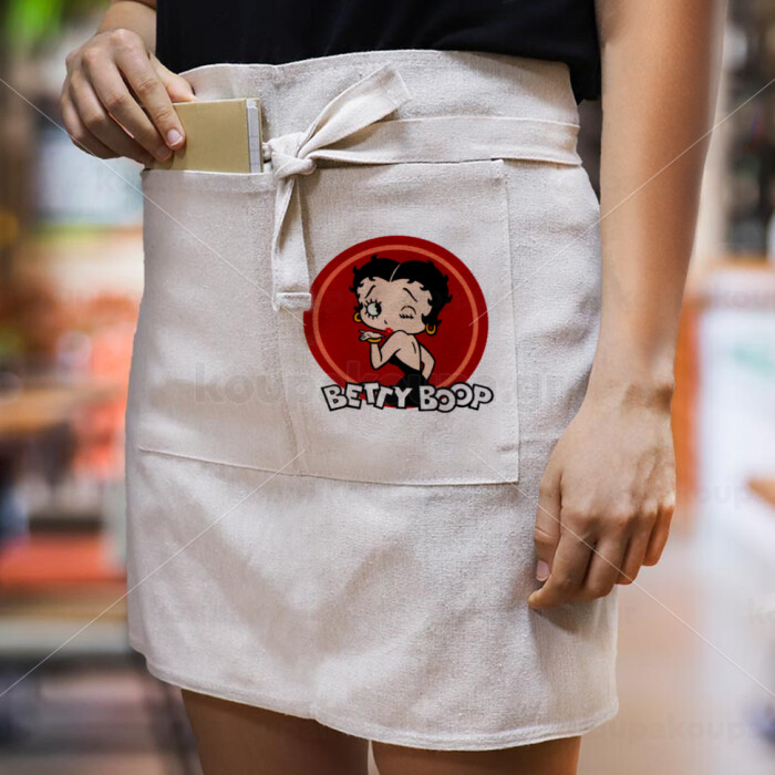 Betty Boop kiss, Ποδιά Μέσης με διπλή τσέπη Barista/Bartender, Beige