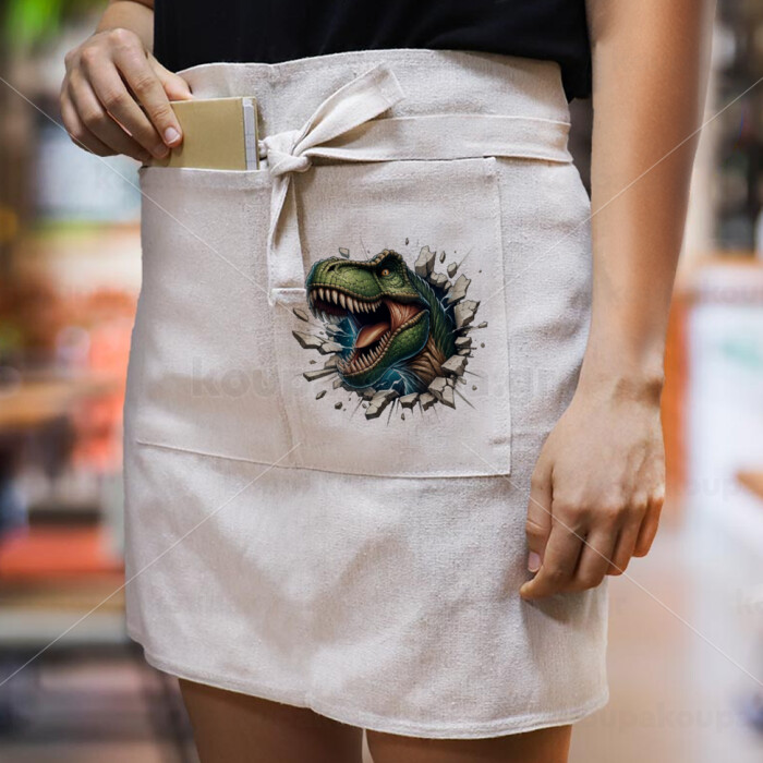 Dinosaur break wall, Ποδιά Μέσης με διπλή τσέπη Barista/Bartender, Beige