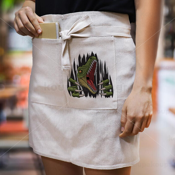 Dinosaur scratch, Ποδιά Μέσης με διπλή τσέπη Barista/Bartender, Beige