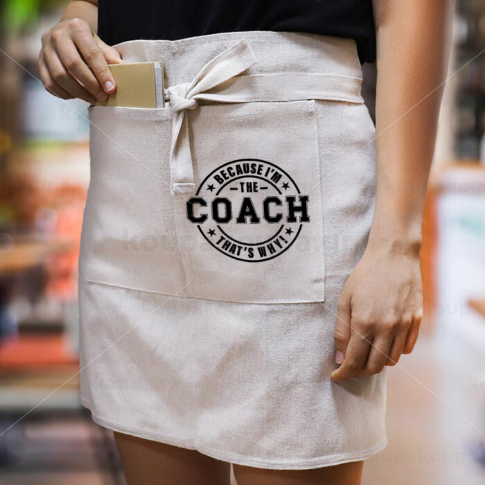 Because i'm the Coach, Ποδιά Μέσης με διπλή τσέπη Barista/Bartender, Beige