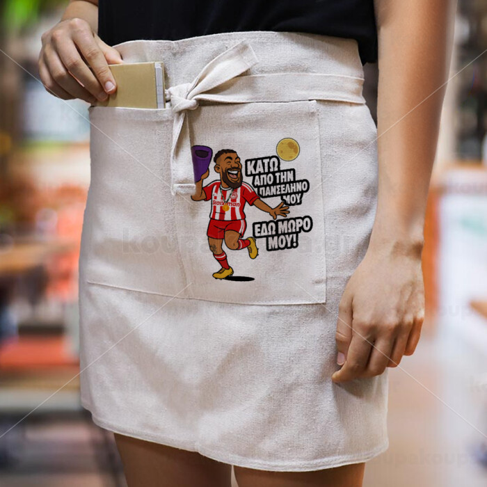 Ροντινέι, "ΚΑΤΩ ΑΠΟ ΤΗΝ ΠΑΝΣΕΛΗΝΟ ΜΟΥ!", Ποδιά Μέσης με διπλή τσέπη Barista/Bartender, Beige