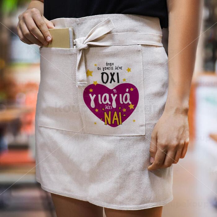 Όταν οι γονείς λένε ΟΧΙ, η γιαγιά λέει ΝΑΙ, Ποδιά Μέσης με διπλή τσέπη Barista/Bartender, Beige