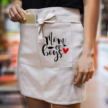 Mom of boys, Ποδιά Μέσης με διπλή τσέπη Barista/Bartender, Beige